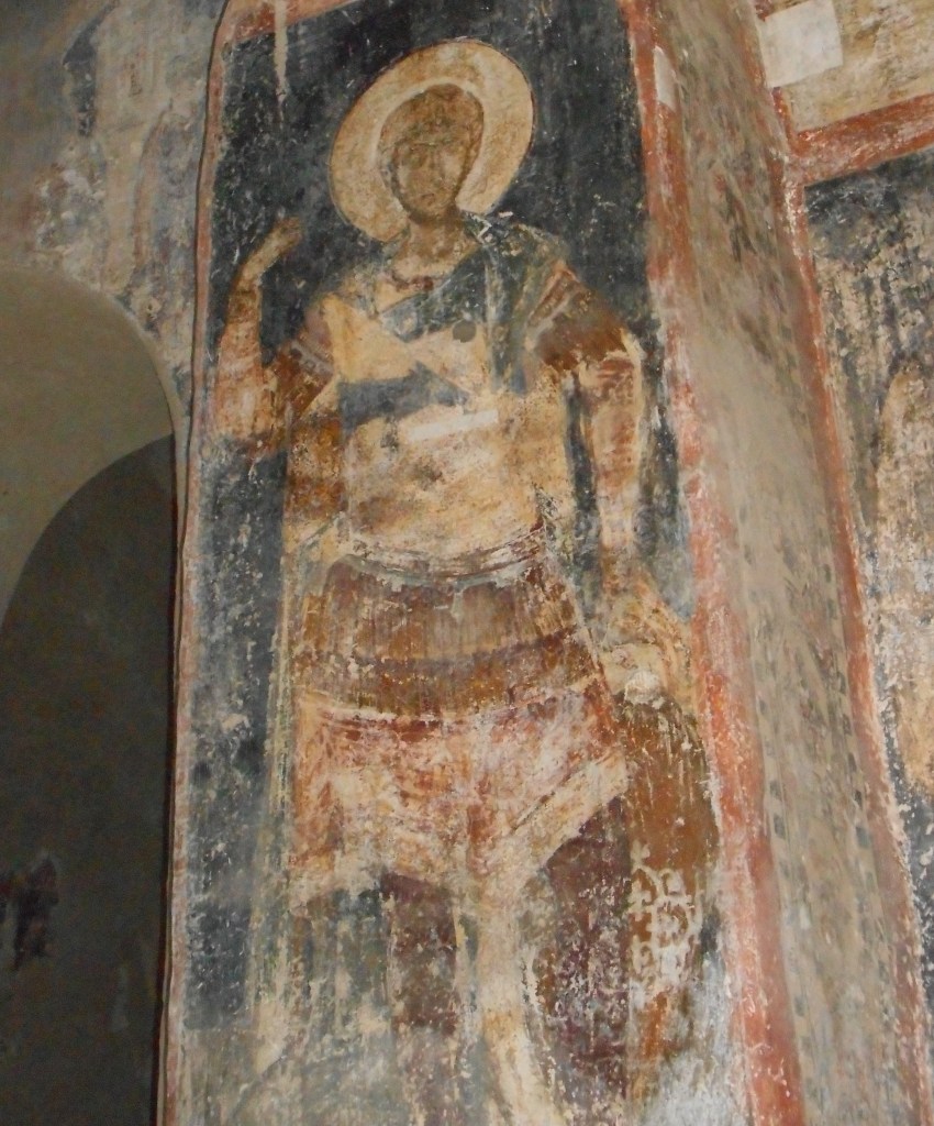 Τὸν καιρὸ ποὺ δούλευα στὸν Μυστρᾶ, τύχαινε πολλὲς φορὲς νὰ βρεθῶ μοναχὸς μέσα στὴν Περίβλεπτο. Τ’ ἀπόγεμα ἡ ἐκκλησία σκοτείνιαζε κι ἀγρίευε. Ἀπὸ πάνου ἀπὸ τὴν σκαλωσιὰ ἄκουγα πατήματα. «Κανένα φάντασμα θὰ περπατᾷ», συλλογιζόμουνα, καὶ γύριζα τὸ κεφάλι μου πάντα κατὰ τὸ μέρος ποὺ στεκόντανε ζωγραφισμένοι οἱ στρατιῶτες καὶ οἱ πολεμάρχοι. Στεκόντανε στὴ σειρὰ ἕνα γῦρο, λίγο ψηλότερα ἀπὸ τὸ χῶμα, οἱ περισσότεροι μὲ βγαλμένα μάτια, τρυπημένοι στὸ στῆθος, πολλοὶ ἀπ’ αὐτοὺς κομματιασμένοι ἀπὸ τὶς σπαθιές. Σὲ πολλὰ κεφάλια εἶχε ἀπομείνει γερὸ ἕνα μάτι μοναχά, μὰ κεῖνο τὸ μάτι ἔβλεπε σὰν δέκα ζωντανά.