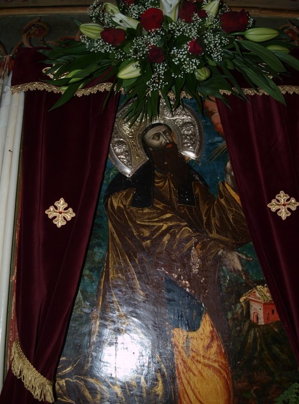 Στίς ἀρχές τοῦ 20οῦ αἰώνα φοβερή ἀρρώστια ἀφάνιζε τά µικρά παιδιά τοῦ Βογατσικοῦ. Οἱ κάτοικοι ζήτησαν καί ἦρθαν στό χωριό τους τά τίµια λείψανα τοῦ Ὁσίου ἀπό τό Μοναστήρι του καί ἡ ἐπιδηµία πέρασε. Οἱ χριστιανοί ἀπό εὐγνωµοσύνη γιά τή σωτηρία τῶν παιδιῶν τους φιλοτέχνησαν δύο εἰκόνες πρός τιµήν τοῦ Ὁσίου, ἀργότερα δέ ἀνήγειραν καί πετρόκτιστο ναό, σέ ρυθµό βασιλικῆς, ὅπου τίς τοποθέτησαν (µία στό νάρθηκα, τήν ἄλλη στό τέµπλο).
