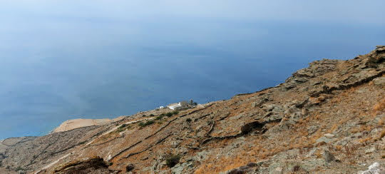 Η Μονή μοιάζει να αναδύεται από το βραχώδες και γυμνό τοπίο που την περιβάλλει. Έχει μορφή φρουρίου, περίτεχνο ξυλόγλυπτο τέμπλο και εξαιρετικές αγιογραφίες, ενώ τα λιθόκτιστα «κονάκια» και οι ασβεστωμένες πέτρινες αυλές που την περιστοιχίζουν διαμορφώνουν ένα ατόφιο αιγαιοπελαγίτικο περιβάλλον, λιτό, γαλανό, ολόφωτο και την ίδια στιγμή γεμάτο ιερότητα και σπάνια ομορφιά.