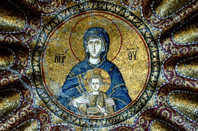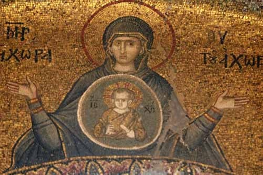 Η Υπεραγία Θεοτόκος φρεφοκρατούσα στον τρούλο της Μονής της Χώρας