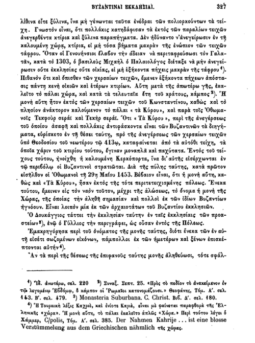 Αξίζει να διαβάσετε την ιστορία της Μονής της Χώρας, όπως την περιγράφει, αλλά και την περιγραφή του «μωσαϊκού» και των εικόνων του, που τις χαρακτηρίζει «τις ωραιότερες των σωζομένων βυζαντινών εικόνων». Από την τοπογραφία σημειώνω την εγγύτητά της Μονής, «μερικά βήματα» κατά τον Πασπάτη, από τη μοιραία Κερκόπορτα…