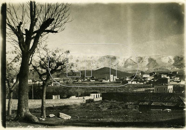 Το Παγκράτι με τα πρώτα σπίτια του και στο βάθος