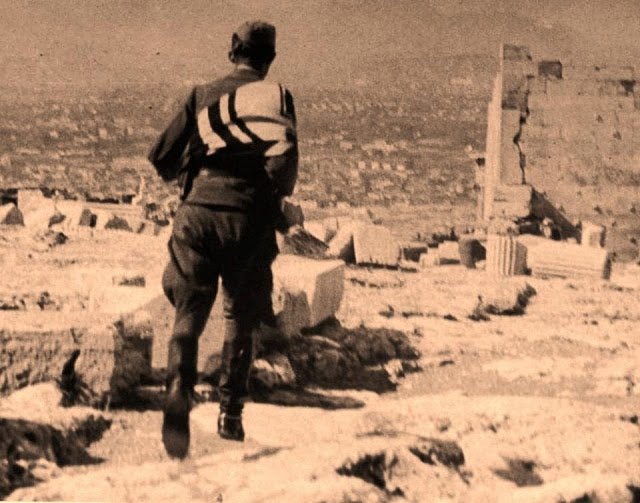 Ο τελευταίος Γερμανός στρατιώτης της Ακροπόλεως εγκαταλείπει τον ιερό βράχο τυλιγμένος με τη σβάστικα