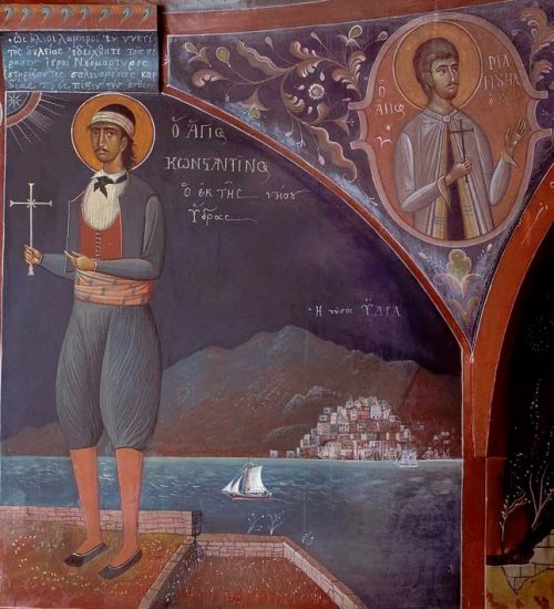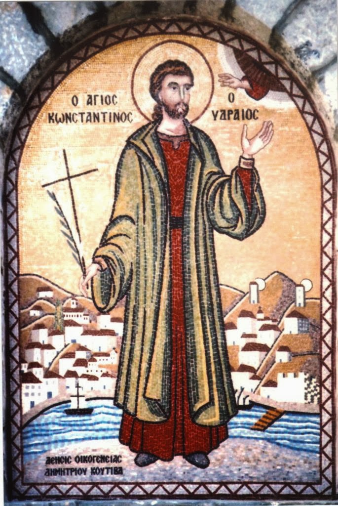 [26] Ο Άγιος Κωνσταντίνος ο Υδραίος γεννήθηκε το 1770 στην Ύδρα και μαρτύρησε δι’ απαγχονισμού στις 14 Νοεμβρίου 1800 στη Ρόδο (anastasiosk.blogspot.gr).
