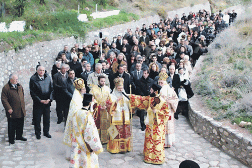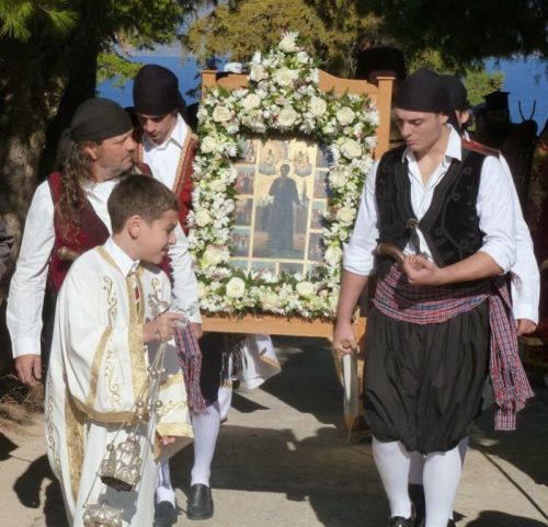 [20] Στιγμιότυπο από τη λιτάνευση της ιεράς εικόνος του πολιούχου Αγίου της Ύδρας στην πανήγυρη της 14ης Νοεμβρίου 2012 (hydra-hydrea-hydroussa-ekklhsies2012.blogspot.gr).