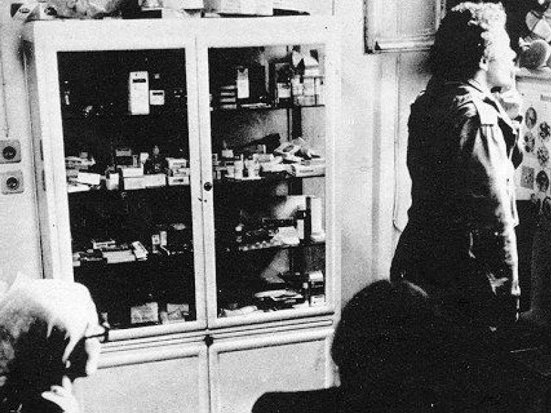 Το ιατρείο το πρωινό της 17ης Νοέμβρη 1973, μετά την εισβολή του τανκ