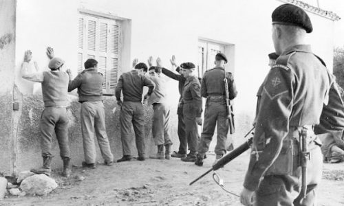 Αριστερά: Οι βρετανοί έχοντας συλλάβει ένα 10χρονο παιδί ως ..τρομοκράτη. δεξιά: Έλεγχος Κυπρίων πολιτών από βρετανούς στρατιώτες (kyriakosmatsis.com.cy)