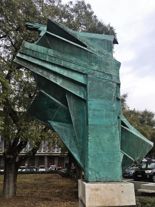 Το μνημείο και η προτομή του Κυριάκου Μάτση στο προαύλιο του Αριστοτελείου Πανεπιστημίου Θεσσαλονίκης (parallaximag.gr, kerkida.net)
