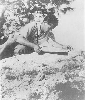 Ο νεαρός Κυριάκος Μάτσης στην Κύπρο, στις 8 Νοεμβρίου 1951, συγγράφοντας την πτυχιακή εργασία του με θέμα: «Γενική μελέτη του χωρίου Παλαιχωρίου Λευκωσίας και ειδική της εν αυτώ αμπελοκαλλιέργεια» (kyriakosmatsis.com.cy)