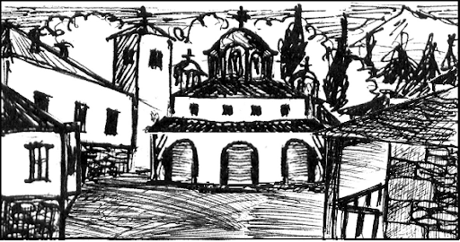 Μόλις έφταναν μέσα στο χωριό, σταματούσε μπροστά στη Εκκλησιά του Αι-Γιώργη, ξεπέζευε από το μουλάρι και το έδενε στην καγκελόπορτα της Εκκλησιάς. Πήγαινε δε κατευθείαν και άνοιγε την Εκκλησιά και χτυπούσε την καμπάνα. Έμπαινε μέσα κάνοντας τον σταυρό του, και προχωρούσε κατευθείαν για την ωραία πύλη, μέσα στο Ιερό, όπου έπιανε το ιερό βιβλίο του και συνέχιζε να διαβάζει τα υπόλοιπα γράμματα του εσπερινού. Σε λίγο, μερικές γριές κατέφθαναν, σταυροκοπούνταν και ανάβαν το κεράκι τους, παίρνοντας τις θέσεις τους στην σκοτεινή πλέον εκκλησία!