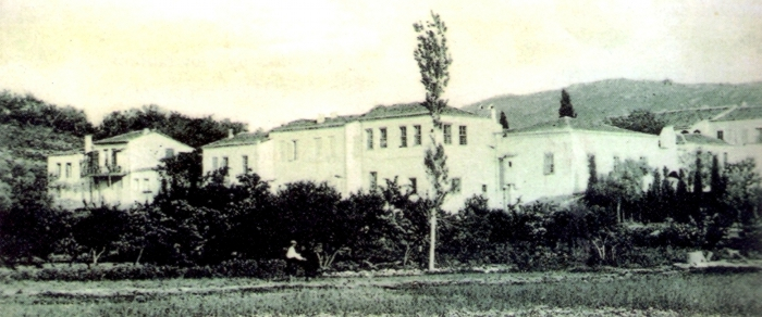 Πανοραμική άποψη της Ι.Μ. Αγίου Νικολάου στο Αϊβαλί (Κυδωνιές) σε καρτ ποστάλ του 1906