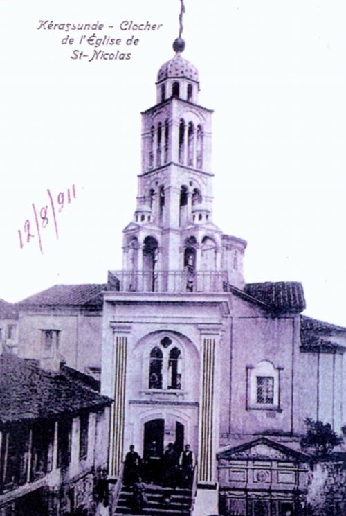 Το καμπαναριό του Ι.Ν. Αγίου Νικολάου στην Κερασούντα του Πόντου (12 Αυγούστου 1911)
