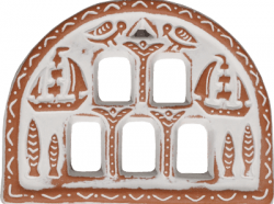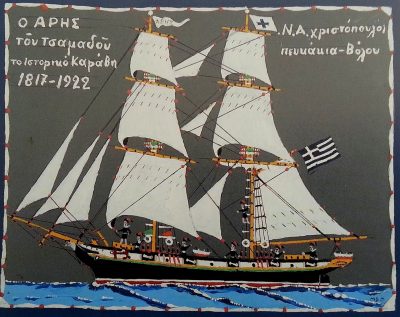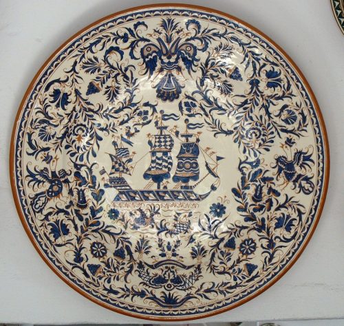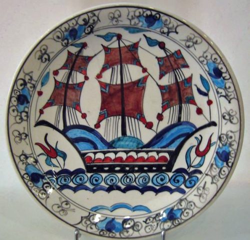 Το καράβι και το ψάρι είναι παραδοσιακά θέματα της ελληνικής λαϊκής κεραμικής. Το τρικάταρτο καράβι που πλέει σε ταραγμένη θάλασσα εμφανίζεται πολύ συχνά θαυμάσια ζωγραφισμένο σε πιάτα της λεγόμενης «ροδιακής κεραμικής».