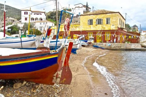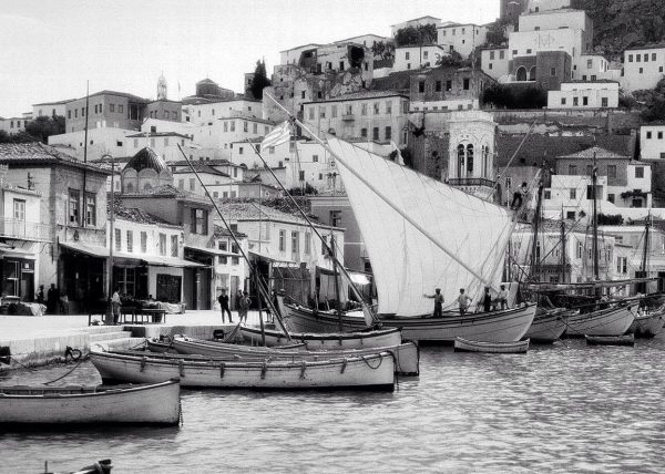Αριστερά: Το λιμάνι της Ύδρας, δεκαετία 1960. Δεξιά: Δημήτρης Χαρισιάδης, Κάλυμνος, δεκαετία 1950