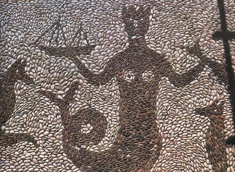 Σε πολλά νησιά του Αιγαίου (Σπέτσες, Σκύρο, Χίο, Μήλο, Κρήτη, Σύμη κ.ά.) συνήθιζαν να στρώνουν τις αυλές με βότσαλα βυθισμένα ως την μέση περίπου του πάχους τους σε ασβεστοκονίαμα. Με την τεχνική αυτή αποδίδονται ιστιοφόρα που αρμενίζουν με ανοικτά πανιά, ψάρια, γοργόνες που άλλοτε κρατούν προστατευτικά τα καράβια και άλλοτε τα βουλιάζουν, πυξίδες άγκυρες, κανόνια κ.ά.