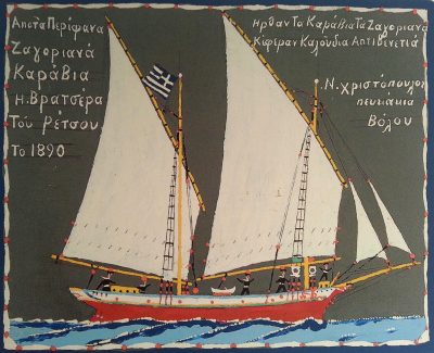 Με το θέμα της απεικόνισης των καραβιών ασχοληθήκαν, εκτός από τους κορυφαίους Νεοέλληνες ζωγράφους, και ένας μεγάλος αριθμό ταπεινών και αυτοδίδακτων ζωγράφων, που στα πολυσύχναστα λιμάνια, όπως και κάποτε στις κατ’ εξοχήν ναυτικές περιοχές, συχνά παρουσιάζονταν με τα σύνεργά τους στον καπετάνιο (που πολλές φορές ήταν ο πλοιοκτήτης) κάποιου καραβιού και συνήθως εκλιπαρούσαν για κάποια παραγγελία, που πρέπει να φανταστούμε ότι -έστω και με τη χαμηλή αμοιβή που ζητούσαν- τις περισσότερες φορές δεν επετύγχαναν. Αυτοί λοιπόν οι βασανισμένοι βιοπαλαιστές, οι οποίοι συνήθως προέρχονταν από το ναυτικό επάγγελμα που για διάφορες αιτίες είχαν εγκαταλείψει, είναι οι κυρίως «πλοιογράφοι», αυτοί που εργάστηκαν στα διάφορα ναυτικά κέντρα της Ελλάδος και χάρη στους οποίους διασώθηκε ένα σημαντικό κεφάλαιο ναυτικής παράδοσης και κληρονομιάς.