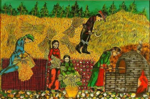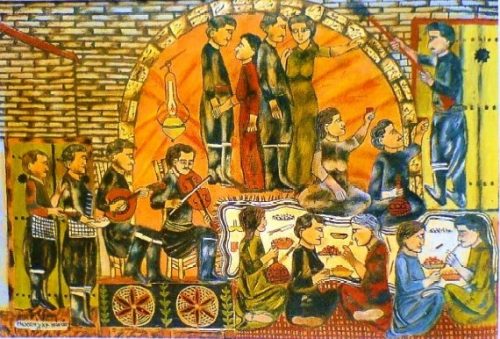Έργα του λαϊκού Ασσιώτη ζωγράφου Μιχάλη Κκασιάλου με καθημερινές σκηνές από το σπίτι του στην Άσσια