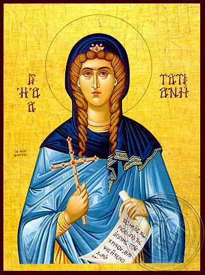 Η Αγία Μάρτυς Τατιανή καταγόταν από τη Ρώμη και έζησε κατά την εποχή του αυτοκράτορα Αλεξάνδρου του Σεβήρου (222-235 μ.Χ.). Ο πατέρας της είχε διατελέσει ύπατος. Η Αγία Τατιανή είχε το εκκλησιαστικό αξίωμα της διακόνισσας και στην υμνολογία παρίσταται ως μαθήτρια των Αγίων Αποστόλων Πέτρου και Παύλου. Η επισημότητα της καταγωγής της και ο ένθεος ζήλος, με τον οποίον εκτελούσε τα διακονικά της καθήκοντα, έδωσαν στην Τατιανή περιφανή θέση μεταξύ των Χριστιανών. Και οι Εθνικοί όμως είχαν ακούσει περί αυτής και δεν μπορούσαν να δεχθούν το γεγονός ότι μια τέτοια γυναίκα καταφρονούσε τις κοσμικές βλέψεις και περιφρονούσε τα είδωλα, για να υπηρετεί με τόση αυταπάρνηση τους Χριστιανούς και να κηρύττει το Ευαγγέλιο του Κυρίου.