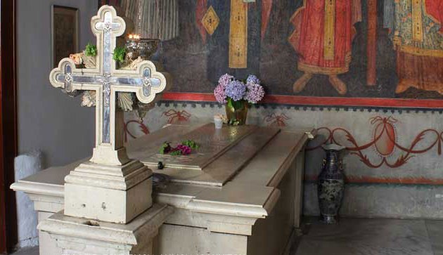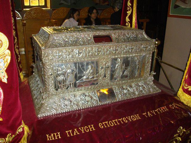 Ο τάφος και η ασημένια λάρνακα με το ιερό λείψανο του Αγίου Γεωργίου Ιωαννίνων