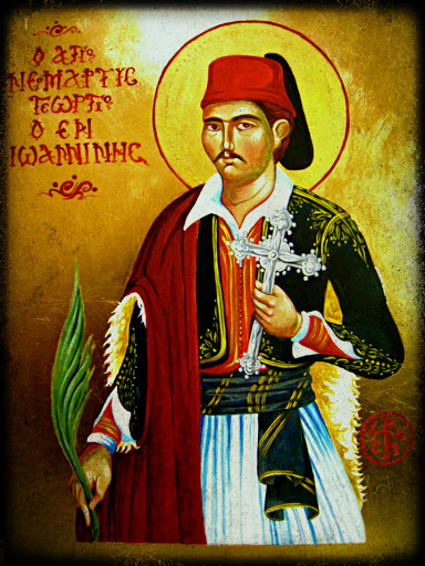 Χαίροις τῶν Μαρτύρων ὁ κοινωνός, καί λαμπρά προθήκη, καί ἰσότιμος ἀληθῶς· χαίροις Νεομάρτυς, Γεώργιε θεόφρον, τῆς Ἐκκλησίας ἄστρον, νέον καί ἐκλαμπρον.