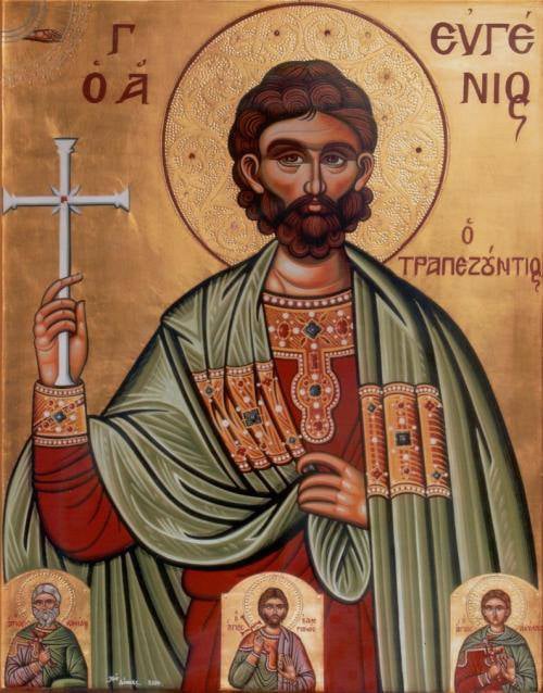 Ο Άγιος Ευγένιος είναι το καύχημα του Πόντου. Γεννήθηκε στην Τραπεζούντα, εξ ου και το προσωνύμιο «Τραπεζούντιος» που του έχει αποδοθεί και ήταν γόνος αριστοκρατικής οικογένειας. Έζησε την εποχή που διοικητής της Καππαδοκίας ήταν ο Λυσίας, ο οποίος ήταν σκληρός διώκτης των χριστιανών και πιστός στην περσική θεότητα του «Μίθρα», που τότε ήταν πολιούχος της Τραπεζούντας. Έτσι, λοιπόν, όσοι πίστευαν στην νέα θρησκεία, τον χριστιανισμό δηλαδή, υφίσταντο φρικτά βασανιστήρια.