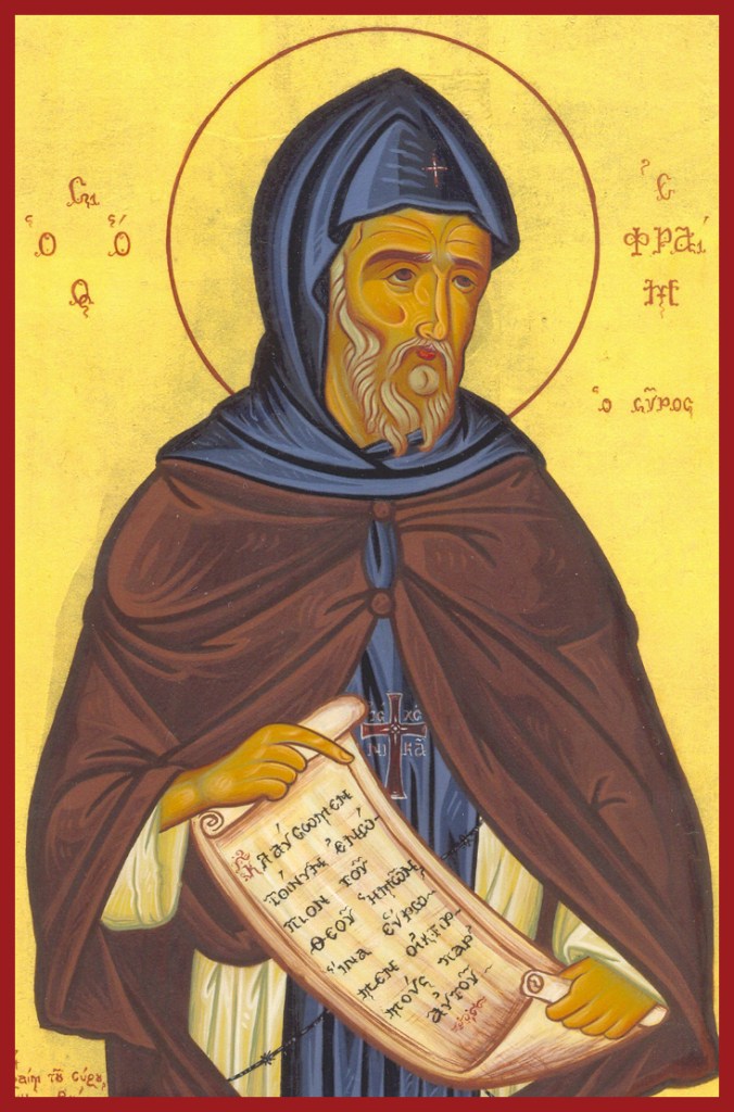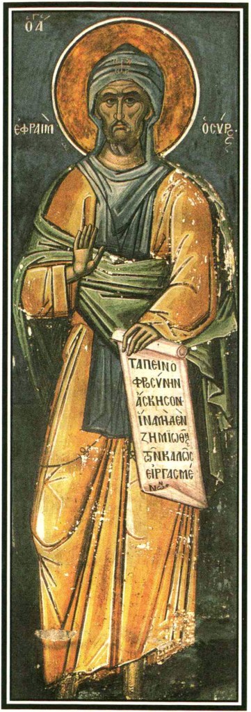 Ανάμεσα στα ολίγα σωζόμενα πνευματικά διαμάντια της Ορθοδόξου Εκκλησίας, ισάξιος στην πολυμάθεια με τον Μέγα Βασίλειο, στη γλυκύτητα και στη γλαφυρότητα του λόγου με τον Θείο Χρυσόστομο, σύγχρονος και με τους δύο, είναι ο Όσιος και Θεοφόρος Πατέρας μας και Οικουμενικός Διδάσκαλος, Εφραίμ ο Σύρος.