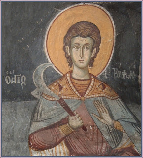 Τῶν πόνων μακάριε κατατρυφῶν τῆς σαρκός, τὴν θείαν καὶ ἄπονον ἐν Παραδείσῳ τρυφήν, ἀξίως ἀπείληφας, στέφος ἀθανασίας, ἐκ Θεοῦ δεδεγμένος· ὅθεν καὶ ἰαμάτων, ποταμοὺς ἀναβλύζεις, τοῖς πόθῳ καταφεύγουσι Μάρτυς τῇ σκέπῃ σου.