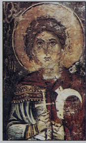 Ἐπὶ δὲ τοῦ βασιλέως Δεκίου, ὃς Φίλιππον διεδέξατο, τὸν κρατήσαντα μετὰ Γορδιανόν, διεβλήθη Ἀκυλίνῳ τῷ ἐπάρχῳ τῆς Ἀνατολῆς, ὅτι μὴ λατρεύει, φησί, τοὺς δαίμονας. Ἀχθεὶς δὲ πρὸς αὐτὸν ἐν Νικαίᾳ, καὶ ὁμολογήσας τὸ τοῦ Χριστοῦ ὄνομα, πρῶτον σπαθίζεται· εἶτα ἵπποις δεσμεῖται, καὶ ἐλαύνεται, χειμῶνος ὥρᾳ, κατὰ δυσβάτων καὶ δυσπροόδων χωρίων· καὶ μετὰ τοῦτο, γυμνὸς ἐπάνω σιδηρῶν ἥλων σύρεται. Ἔτι δὲ μαστιχθείς, καὶ λαμπάσι πυρὸς τὰς πλευρὰς ἐκκαείς, τὴν διὰ ξίφους ἀπόφασιν δέχεται, ἣν προφθάσας, τῷ Θεῷ τὸ πνεῦμα παρέθετο.