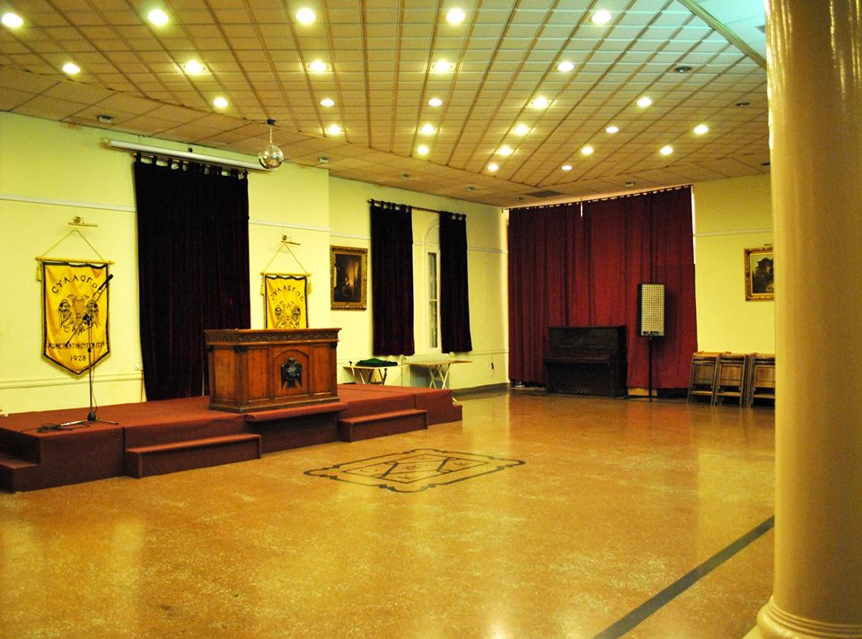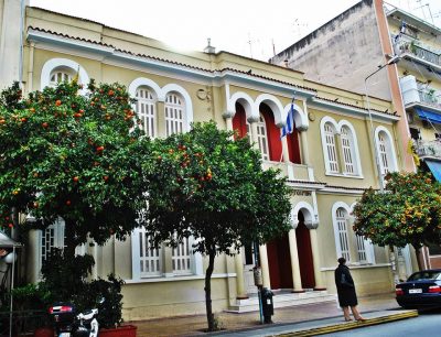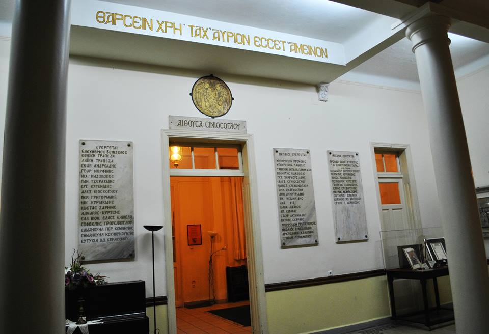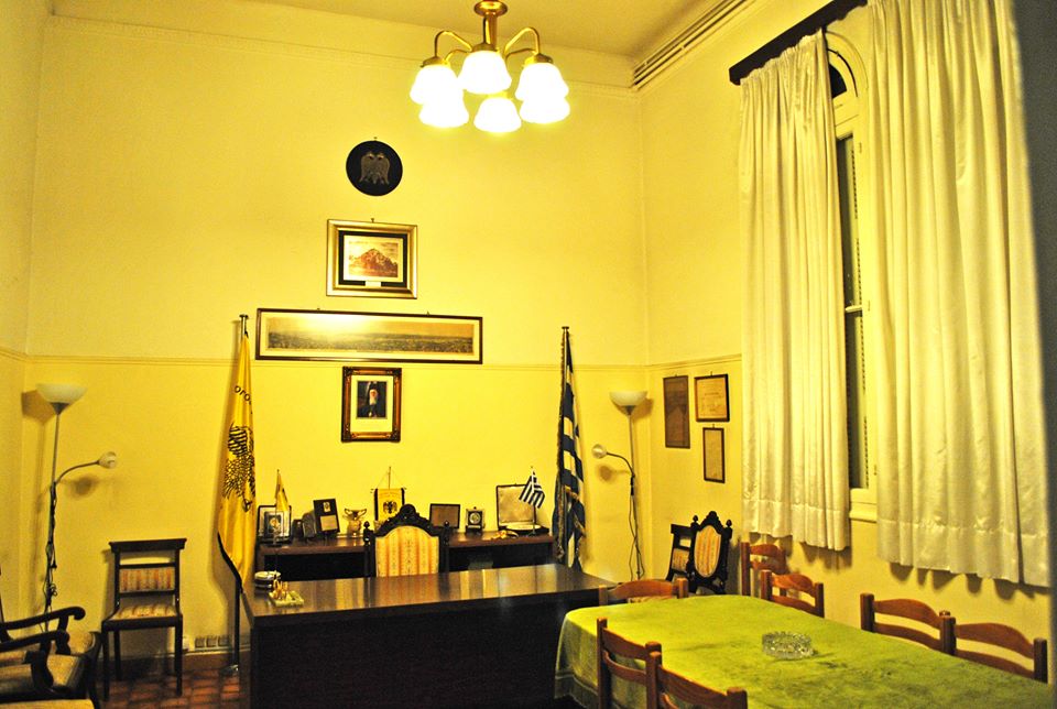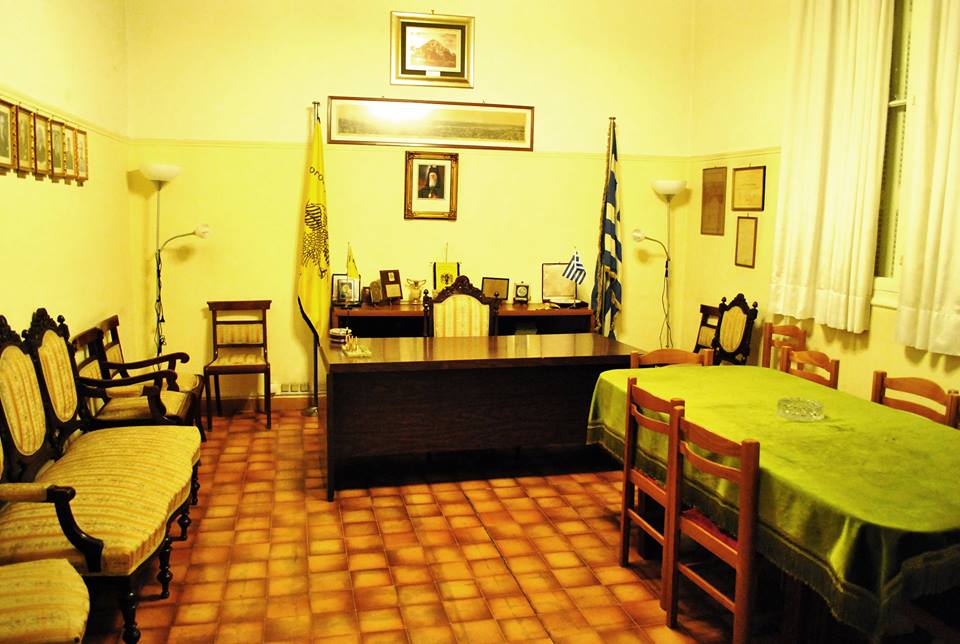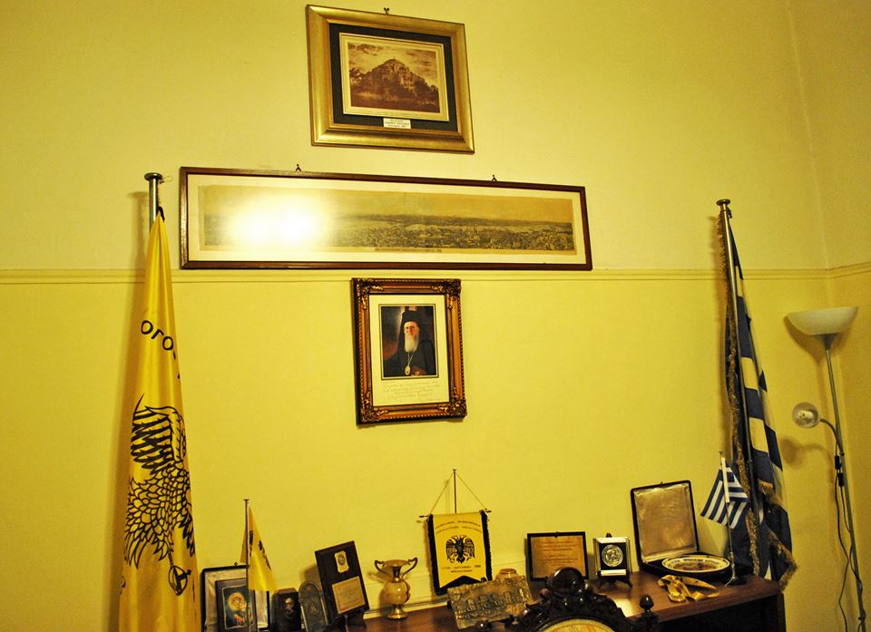Η βαριά ξύλινη διπλή πόρτα της κυρίας εισόδου, με τον Δικέφαλο Αετό, χαραγμένο στο κρύσταλλο! Η μεγαλοπρεπής αίθουσα τελετών και εκδηλώσεων, στον άνω όροφο, όπου εκτός των άλλων, είναι αναρτημένη η εικόνα του Κωνσταντίνου Παλαιολόγου, καθώς και ο θυρεός του ιστορικού συλλόγου. Στο δάπεδο δε της αίθουσας τελετών, υπάρχουν αντικριστά δυο επιγραφές! 1931 και 1936. Είναι οι δύο χρονολογίες – ορόσημο, που αφορούν την κατασκευή και ολοκλήρωση του ιστορικού κτηρίου: Το 1931, οπότε ολοκληρώθηκε και εγκαινιάστηκε το ισόγειο του κτηρίου, και το 1936, όταν συντελέστηκε η αναγκαία επέκτασή του, με την προσθήκη του άνω ορόφου.