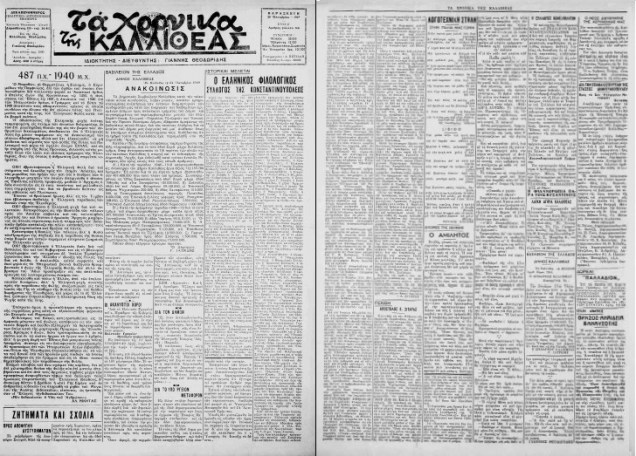 Το φύλλο της εφημερίδος «τα Χρονικά της Καλλιθέας», που κυκλοφόρησε