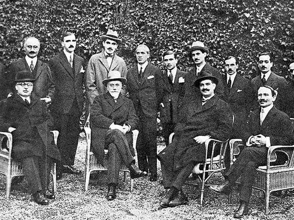 Οι αντιπρόσωποι των συμβαλλομένων κρατών κατά την υπογραφή της Συνθήκης του Βουκουρεστίου (Ιούλ. 1913)