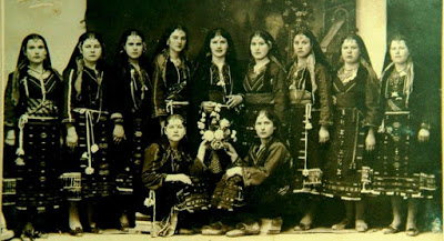 Ελληνίδες από το Καβακλί της Ανατολικής Θράκης με την περίφημη παραδοσιακή φορεσιά τους (pinterest, filippoupolis.blogspot.com)