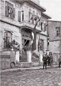 α. Αντιπρόσωποι των συμβαλλομένων κρατών στα Μουδανιά (patranews.com), β. Το Ρωσικό Προξενείο στα Μουδανιά όπου υπεγράφη η Ανακωχή τον Οκτώβριο του 1922 (fb), γ. Ο χώρος υπογραφής της Συνθήκης των Μουδανιών (docplayer.gr)