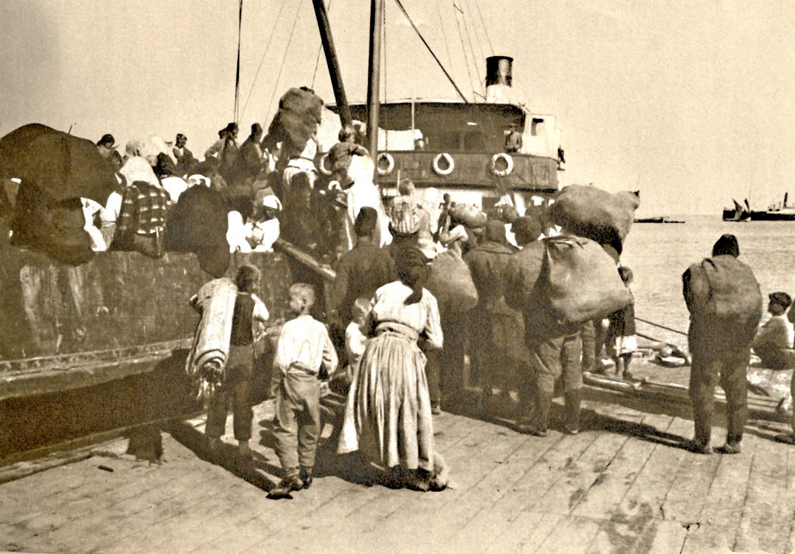 Εγκαταλείποντας την Ανατολική Θράκη με κάθε μέσο… Αριστερά: πορεία προς τον Έβρο και τη δυτική Θράκη και δεξιά: αποχώρηση Ελλήνων της Τσατάλτζας (Μετρών) από λιμάνι της Ανατ. Θράκης (kastropolites.com, users.sch.gr)