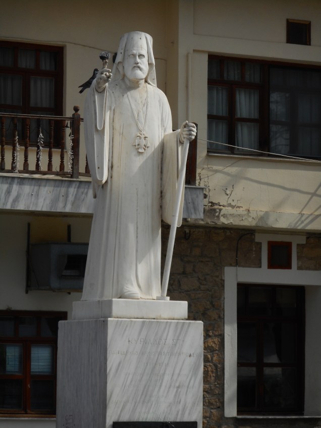 Βηματίζοντας αργά με προσοχή πάνω στο άσπρο χιόνι, καταφέρνω να διασχίσω τη μισή πλατεία και βρίσκομαι μπροστά στη μαρμάρινη βάση του ανδριάντα του ηρωικού Κυρίλλου Στ’, του γίγαντα της ορθοδοξίας, της σοφίας, της ανδρείας και του ελληνισμού, που στέκει ευλογώντας τα αιώνια παιδιά του έξω από το παραδοσιακό κτίσμα του δημαρχείου της πόλης. Κάθε φορά που έρχομαι στην Ορεστιάδα, πριν από οτιδήποτε άλλο, περνώ κάτω από το άγαλμά του, τον κοιτώ και του εμπιστεύομαι τον ερχομό μου και την παραμονή μου στην πόλη του. Και πριν φύγω, πάλι τον ευχαριστώ και τον αποχαιρετώ… Για μένα, ο μαρτυρικός Πατριάρχης είναι ο οικοδεσπότης εδώ, ο παντοτινά τιμώμενος.
