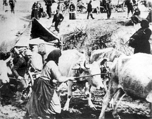 Οικογένειες Ελλήνων της Ανατολικής Θράκης περνούν την Αδριανούπολη στο δρόμο της προσφυγιάς, τον Οκτώβριο του 1922 (anthofyto.wordpress.com)