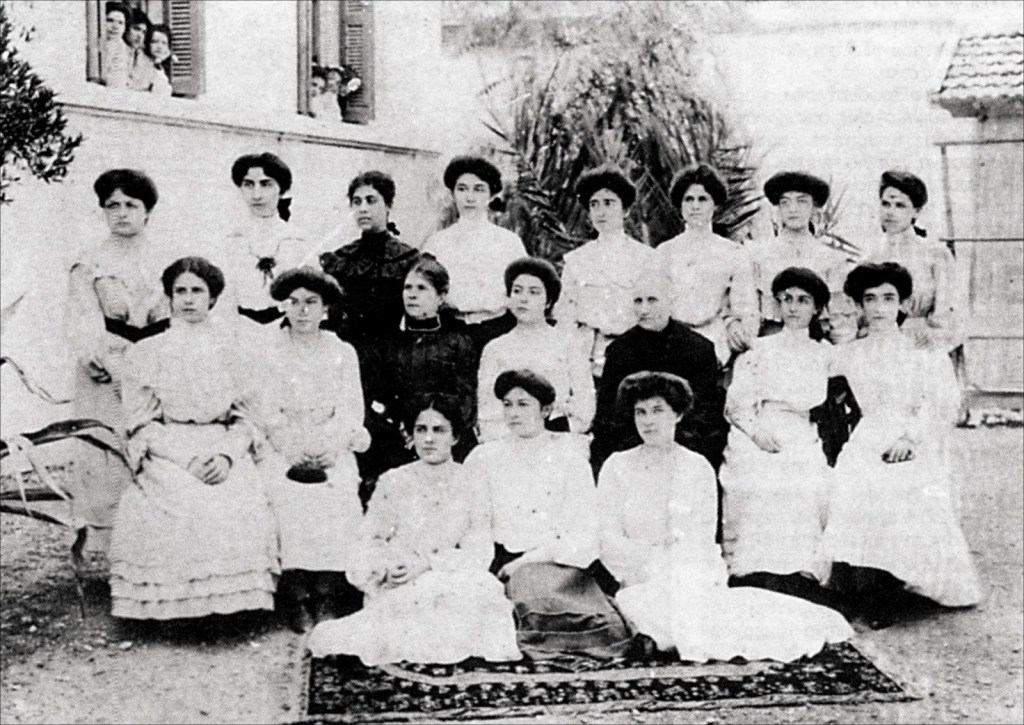 Οι τελειόφοιτες του Ομηρείου Παρθεναγωγείου Σμύρνης το 1905, με τη διευθύντρια Ελένη Λουίζου (Αρχείο Ενώσεως Σμυρναίων)