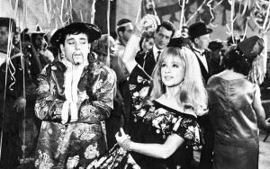 Ξεχωριστή αναφορά αξίζει στο μοναδικό καρναβάλι στη Βενετία, στο φινάλε της ταινίας «Μια τρελή οικογένεια» του 1965, των Τσιφόρου – Βασιλειάδη. Υπό τους ήχους της μουσικής του Μίμη Πλέσσα και σε χορογραφίες Γιάννη Φλερύ, πόσες φορές δεν απολαύσαμε την αξέχαστη Τζένη Καρέζη και τον γοητευτικό Αλέκο Αλεξανδράκη να χορεύουν γιάνκα, μπόσα νόβα και βαλς, πλαισιωμένοι από μια ομάδα αγαπημένων ηθοποιών (Μαίρη Αρώνη, Διονύσης Παπαγιαννόπουλος, Δημήτρης Καλλιβωκάς, Κατερίνα Γώγου, Αλέκος Τζανετάκος κ.ά.). Ανάμεσα σε ένα πολύχρωμο πλήθος από κολομπίνες, πιερότους, αρλεκίνους και γελωτοποιούς, γινόμαστε κι εμείς μέρος μιας κινηματογραφικής απόδοσης του περίφημου καρναβαλιού της Βενετίας!