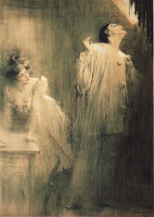 Μια βραδιά -πάλι τελευταία Κυριακή της Αποκριάς (γιατί τα θυμούμαι τώρα, Θε μου, όλ’ αυτά;) πήγαμε στο σπίτι ενός μακρινού μου συγγενούς. Επρόκειτο, όπως συνήθως, να χορέψουμε. Πήγαμε οι δυο μας, οι άλλοι ήταν καλεσμένοι σ’ άλλο σπίτι. Χόρεψα με πολύ λίγους καβαλιέρους. Κατά τα μεσάνυχτα, μέσ’ στην παραζάλη του χορού, είχα καθίσει πάλι στο πιάνο, κι έπαιξα ένα εύθυμο κομμάτι. Κι ενώ στεκόμουν και μιλούσα με μια φίλη μου, παρουσιάστηκε ο ίδιος ο πιερότος. Μόλις τον είδα, τον θυμήθηκα αμέσως. Έμεινα άφωνη κι εκστατική. Στάθηκε κοντά μου, με τον ίδιο τρόπο. Το πρόσωπό του, όμως, ήταν αλλαγμένο, σα να είχε σηκωθεί από αρρώστια. Και τα μάτια του ήταν, τώρα, ακόμα πιο λυπημένα· έμοιαζαν, τώρα, σα φωτιές που πρόκειται να σβήσουν. Δεν έχω δει ποτέ μου, στη ζωή μου -και ξέρετε τα χρόνια μου, πιστεύω- μάτια πιο πικρά κι απελπισμένα…