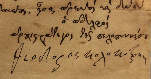 Η υπογραφή του Θ. Κολοκοτρώνη σε επιστολή του προς τον Πλαπούτα