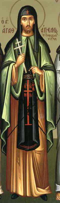 Ὡς τῶν Ὁσίων ζηλωτὴν καὶ ὁμοδίαιτον καὶ τῶν Μαρτύρων μιμητὴν καὶ ἰσοστάσιον Ἀνυμνοῦμέν σε συμφώνως Ὁσιομάρτυς· Φερωνύμως γὰρ ἐφάνης νέος ἄγγελος Ἀγαθῶν ἀγγελιῶν τῶν ὑπὲρ ἔννοιαν τοῖς βοῶσί σοι· χαίροις μάκαρ Ἀγαθάγγελε.