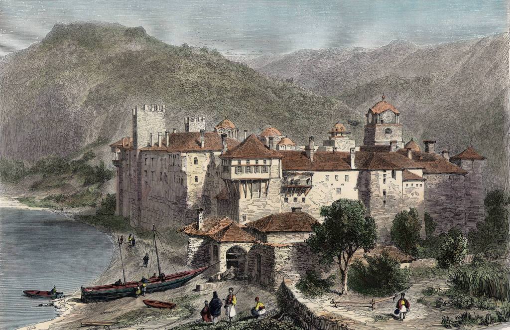 Η Iερά Μονή Εσφιγμένου Αγίου Όρους (άποψη από βορειοανατολικά), Κarl Girardet, 1870