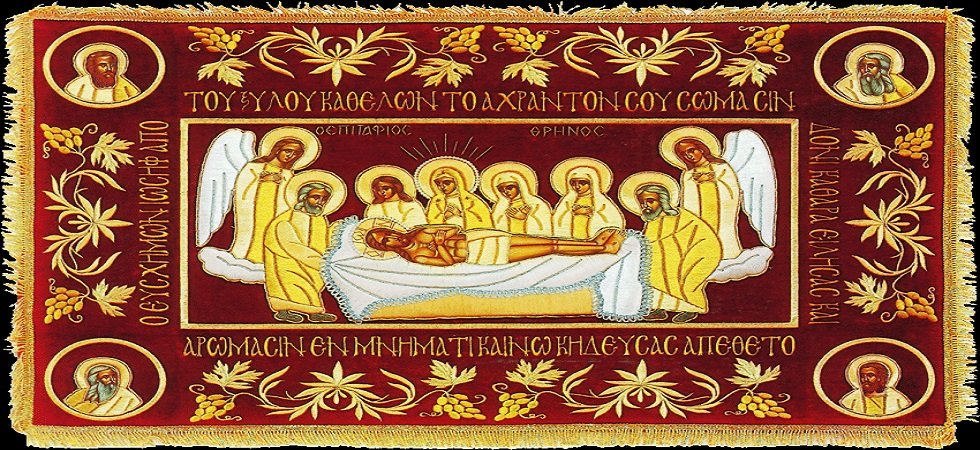 Ὁ εὐσχήμων Ἰωσήφ, ἀπὸ τοῦ ξύλου καθελὼν τὸ ἄχραντόν σου Σῶμα, σινδόνι καθαρᾷ, εἱλήσας καὶ ἀρώμασιν, ἐν μνήματι καινῷ κηδεύσας ἀπέθετο.
