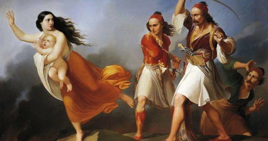 Η λεηλασία της Πελοποννήσου από τον Ιμπραήμ (λεπτομέρεια πίνακα), Βουλή των Ελλήνων