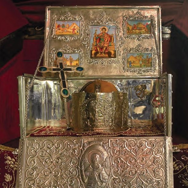 Τῇ σορῷ τῶν σῶν λειψάνων προσιοῦσι, μετὰ πόθου παμμάκαρ Νικόλαε, δώρησαι ῥῶσιν ψυχῆς τε καὶ σώματος.