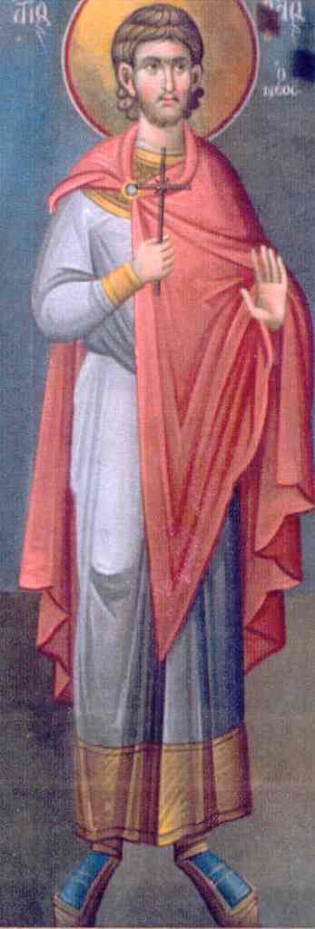 Φύλαττε τοὺς δούλους σου ἀθλητά, τοὺς ἀθροιζομένους τῷ σεπτῷ σου, μάρτυς ναῷ, καὶ ἐπιτελοῦντας, τὴν σὴν ἁγίαν μνήμην, ἐκ πάσης ἐπηρείας, σοφὲ καὶ θλίψεως.