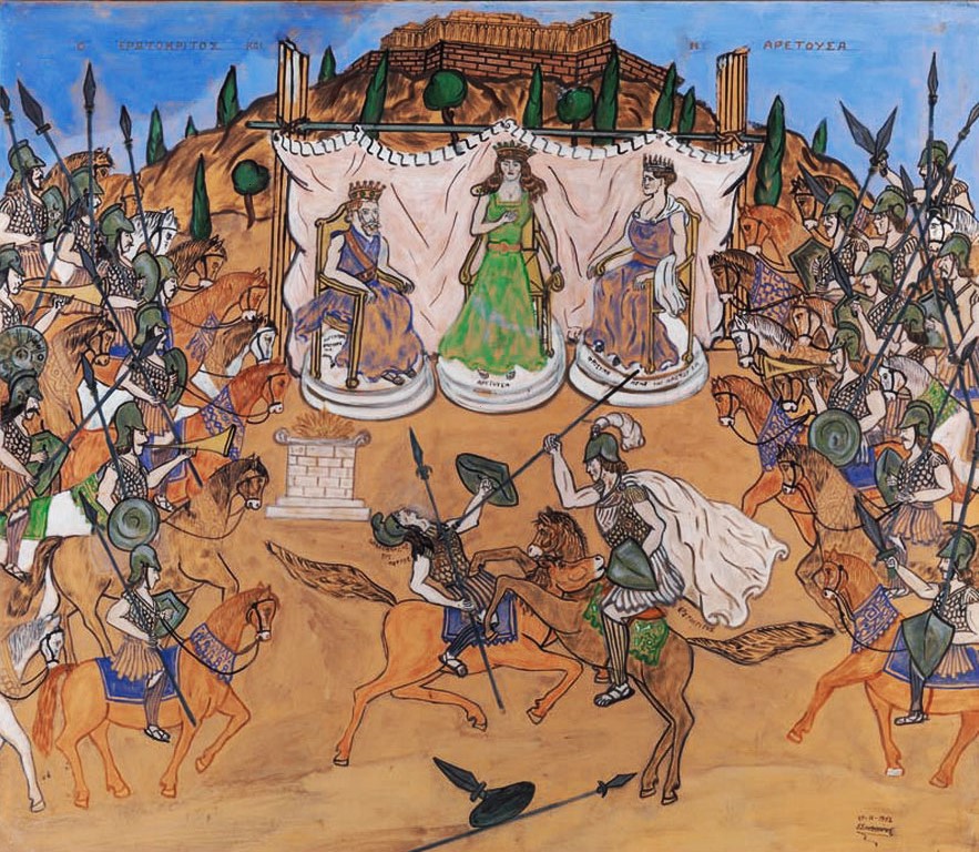 H Aρετούσα το κινά, κι ο Pώκριτος το πιάνει, 705