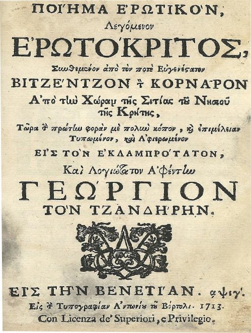 Η α’ έκδοση του Ερωτόκριτου, Βενετία 1713, Γεννάδειος Βιβλιοθήκη