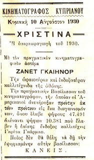 Η μικρή αποβάθρα «παρά την οικίαν του Χ. Στρίγκου» ήταν η γνωστότερη ως «αποβάθρα των Φράγκων». Οι δύο θερινοί κινηματογράφοι που αναφέρει ο Τέμπλαρ ήταν ο κινηματογράφος Κυπριανού και ο κινηματογράφος «Παράδεισος» των αδελφών Γιορδαμλή. Ένα άλλο δημοσίευμα – διαφήμιση της 9ης Αυγούστου 1930 (βλ. σχετ. φωτογραφία), διαφήμιζε ότι από την επόμενη στον κινηματογράφο Κυπριανού θα άρχιζε η προβολή της «υπερπαραγωγής του 1930 Χριστίνα με την ωραιοτέαν και ενδοξοτέραν καλλιτέχνιδα της οθόνης Ζανέτ Γκαίηνορ». Παρόλο που η ταινία ήταν ομιλούσα οι λεμεσιανοί θα την έβλεπαν ως βουβή γιατί ομιλών κινηματογράφος στη Λεμεσό ήλθε δυο χρόνια μετά από τους αδελφούς Χρυσοχού που εντωμεταξύ νοίκιασαν τον κινηματογράφο του Κυπριανού ονομάζοντας τον «Πανόραμα». Και μια ακόμα μικρή λεπτομέρεια, η ταινία ήταν παραγωγή του 1929 και όχι του 1930 όπως διατείνεται η διαφήμιση.
