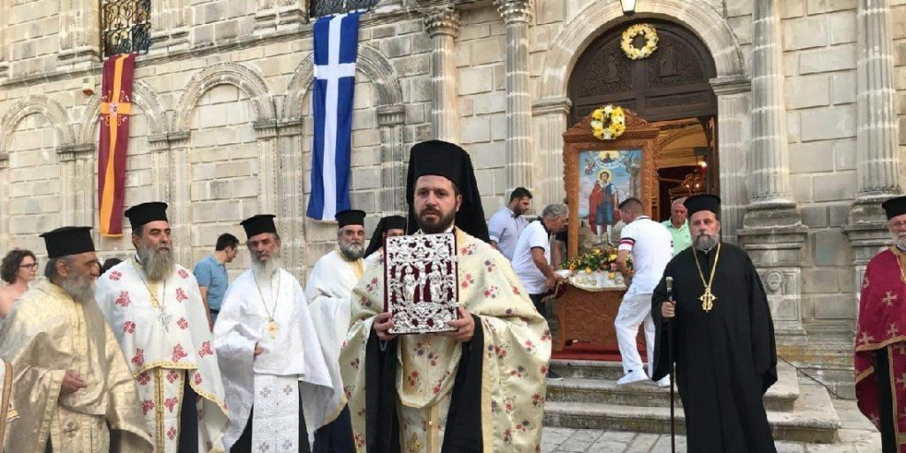 Τὸν γενναῖον ὁπλίτην καὶ Ἀθλητήν, ἐντελῶς ὁπλισθέντα ὅπλοις Χριστοῦ, φέροντα τὴν ἄμαχον, πανοπλίαν καὶ μάχαιραν τοῦ Παναγίου Πνεύματος, ἀσπίδα καὶ κόρυθα, οἷς καθεῖλεν ἀνδρείως, ἐχθροῦ μηχανήματα· δεῦτε ἐτησίως, εὐφημήσωμεν πάντες, ἐστέφθη γὰρ τὸν στέφανον, στρατιώτης ὡς ἔννομος, καὶ πρεσβεύει τῷ στέψαντι, δοῦναι πᾶσι λύσιν τῶν δεινῶν, καὶ τελείαν πταισμάτων συγχώρησιν· τοῖς ἐκ καρδίας καὶ πόθου, τελοῦσι τὴν μνήμην αὐτοῦ.
